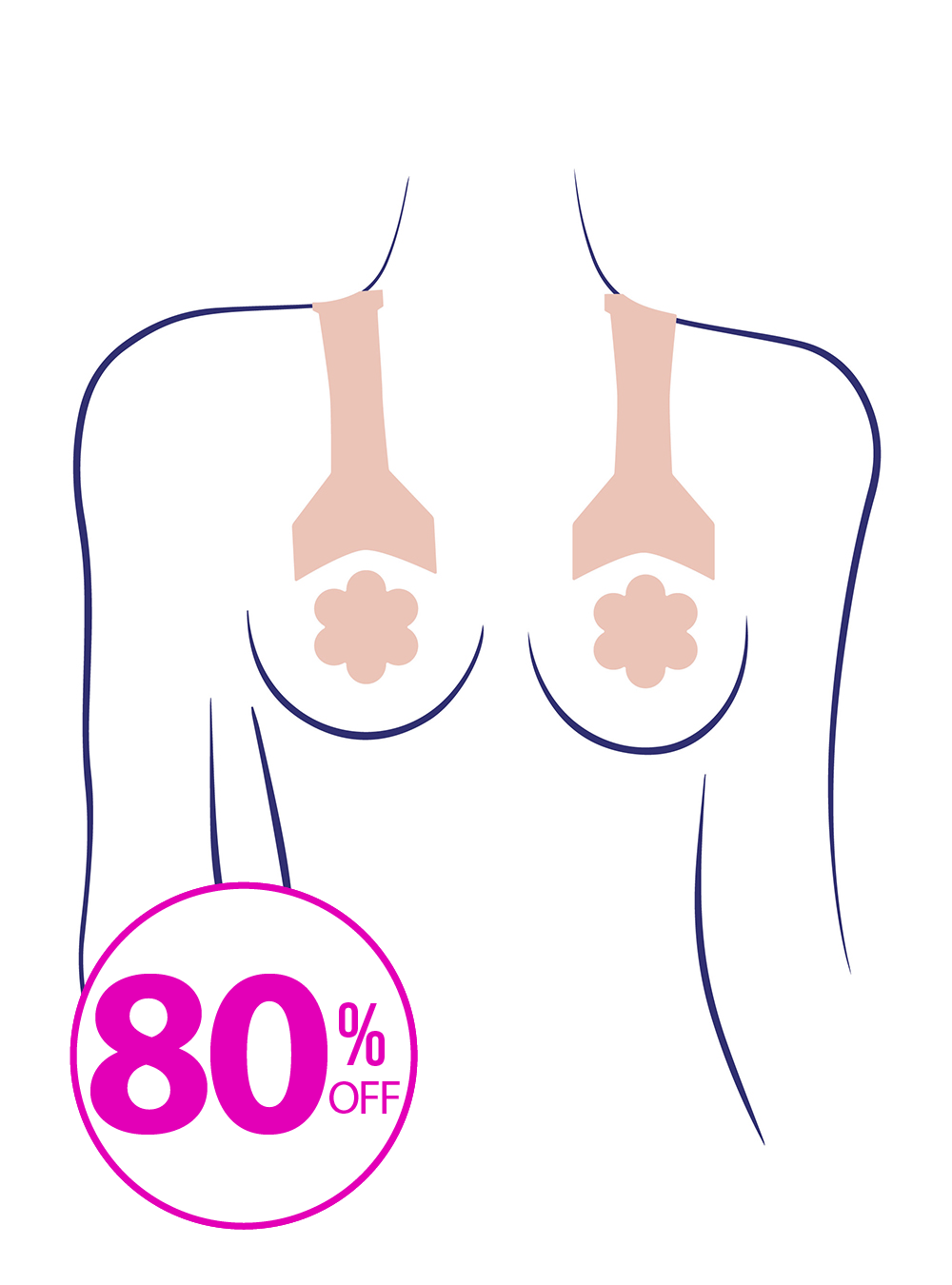 - Coloca el adhesivo en forma de flor junto al círculo protector (encontrados) sobre tu pezón para protegerlo del adhesivo.