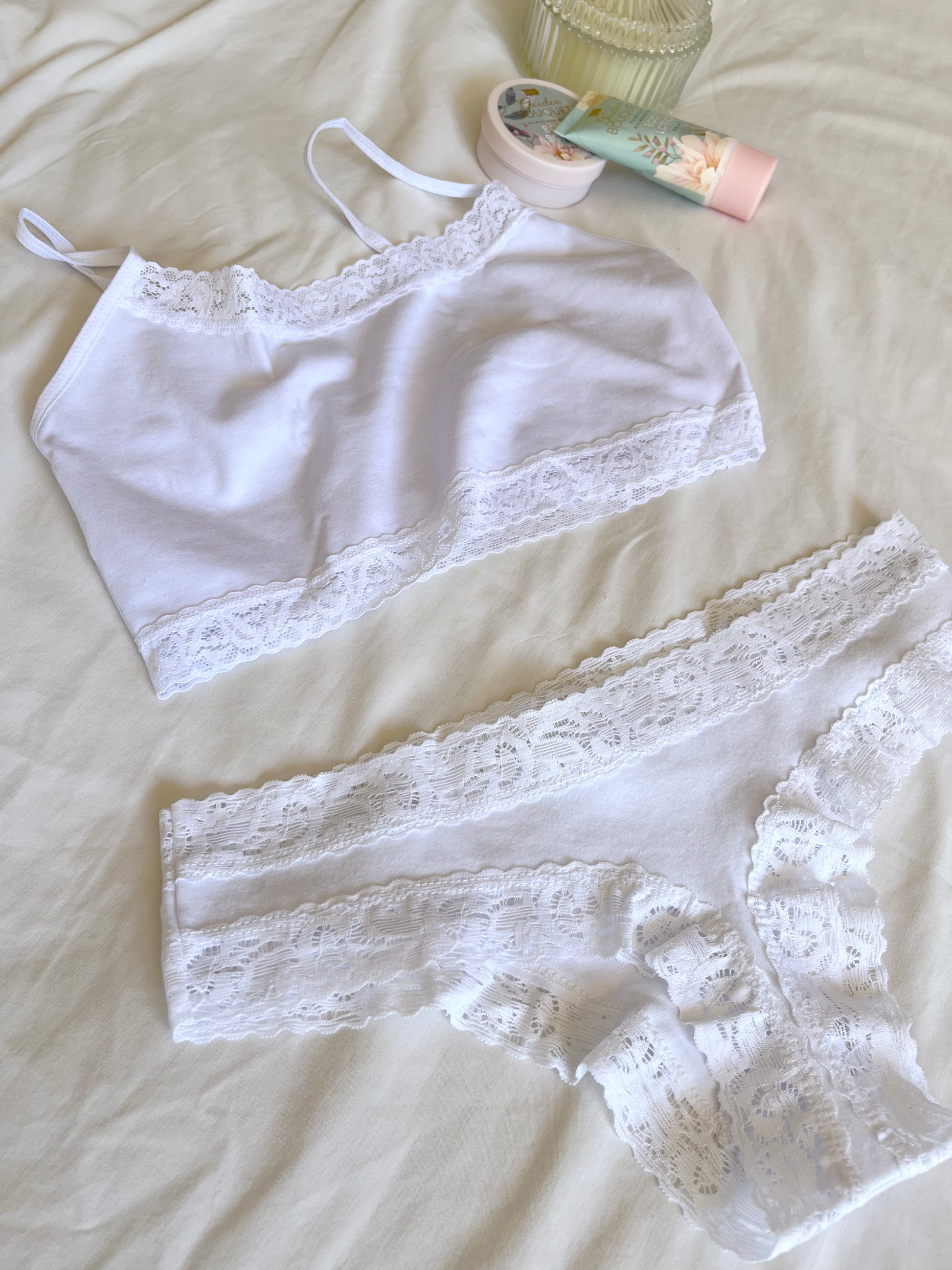 Cachetero Amal Blanco de Algodón y Borde de Encaje