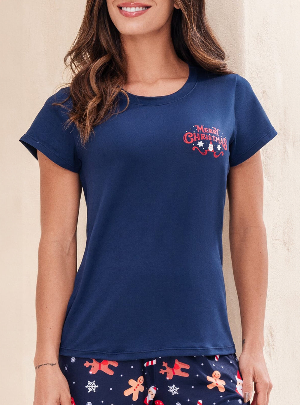 Polera estampada manga corta, diseñada junto a un short estampado con cintura elástica.